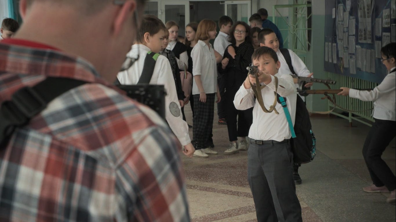 O filme que ele e David Borenstein montam a partir do material segue exatamente esta trajetória, carregando a narrativa de todo tipo de imagem instigante. As cenas feitas por Pavel mostram o desmantelamento inevitável da humanidade das crianças e dos adultos da cidade, sobretudo dos pequenos. Os alunos aos poucos perdem a espontaneidade e a ingenuidade da infância, com a lavagem cerebral do governo deixando natural a convivência com armas e a rotina de violência. Em uma das cenas mais duras, vemos crianças marchando e brincando com armas verdadeiras.